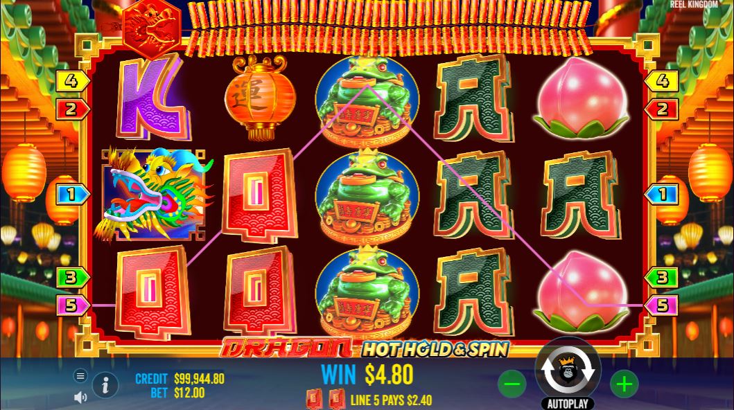 The slot machine is themed with dragons and items from Chinese culture. Dragon Hot Hold and Spin is a 5-payline slot with a 5×3 grid. It features a hold&win mechanic during which only money symbols land. You can win up to 5,000x your bet thanks to the Big Wheel Money Bonus.
