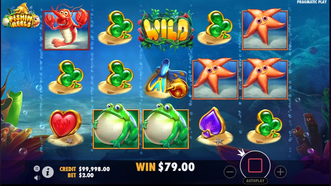 One of the most popular slot machines from Pragmatic Play is Fishin’ Reels. It’s a 3×5 video slot with 10 paylines. An underwater-themed game brings all kinds of fish to the screen. The slot is famous for its bonus round with the Big Catch feature where players can win pure cash.
