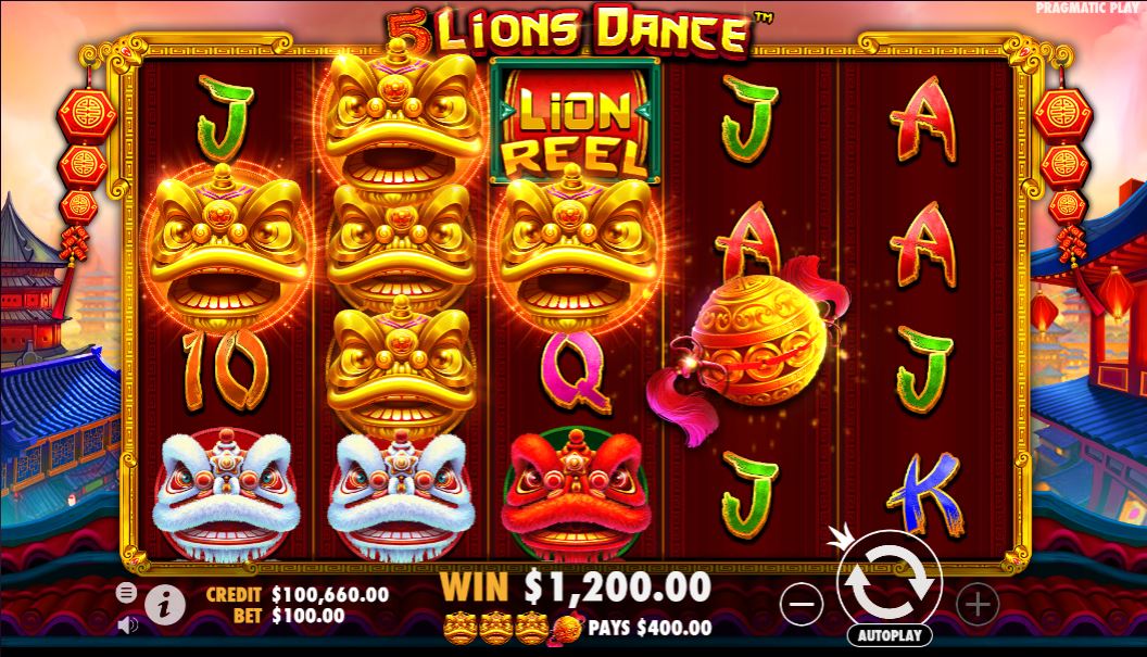 5 Lions Dance is another Chinese-themed video slot. It features a 4×5 grid and 1024 ways to win. When playing, watch the Lions dance on the grid and expend the reels 1 and 2 with multipliers only. You can also trigger a free spins bonus round and win even more!