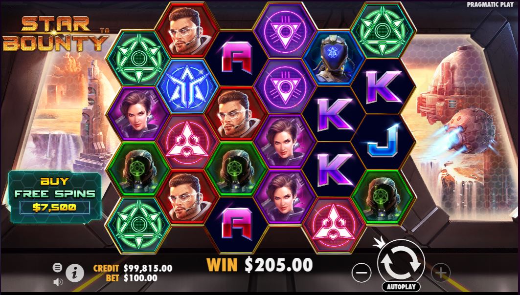 Star Bounty is a 4×6 video slot. It’s a space-themed slot with 4096 ways to win and a cascading mechanic. So board the spacecraft and target your special wins. The slot features Missile Symbol that turns other symbols into Wilds. Activate free spins or buy the bonus if you are ready to experience the intergalactic bounty.
