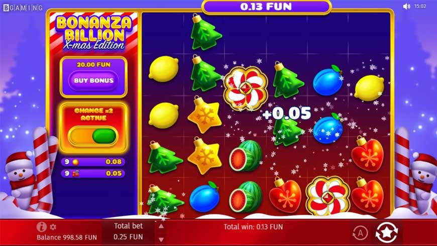 This Christmas-themed game is full of colorful fruits and shining candies. Bonanza Billion Xmas is just a transformation of the popular slot that all players love so much. It features refilling that triggers consecutive wins on every spin. To launch a bonus game, you need to collect more than 4 scatters. Thus, you can have 10, 20, or 30 free spins! If you don’t want to wait till the scatters drop, just buy the bonus feature.
