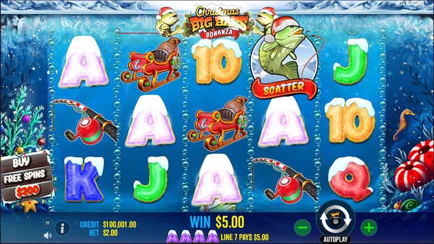 Big Bass Bonanza is a favorite of many players. If it’s your favorite too, then try the Christmas version. You can trigger a free spins round by collecting 3+ scatters and land exciting wins. The free spins can be retriggered thanks to 4 wild symbols that hit on the reels. Besides, the game features wild symbols and a buy bonus button.