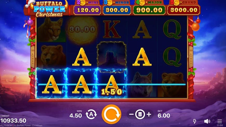 This is a 3×5 video slot with 20 pay lines. Among the bonus features, there are free spins, four local jackpots, a hold-and-win bonus game, and other special symbols. For example, you can trigger stacked wilds, scatter, power symbol, bonus symbol, and multipliers. All in all, Buffalo Power Christmas will make you remember this session.