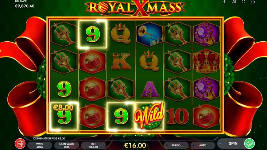 The maximum win potential is x93750! So try to trigger up to 100 free spins by collecting 3 or more bonus symbols. Win additional free spins, and use all the specials to make the most out of Royal Xmass!