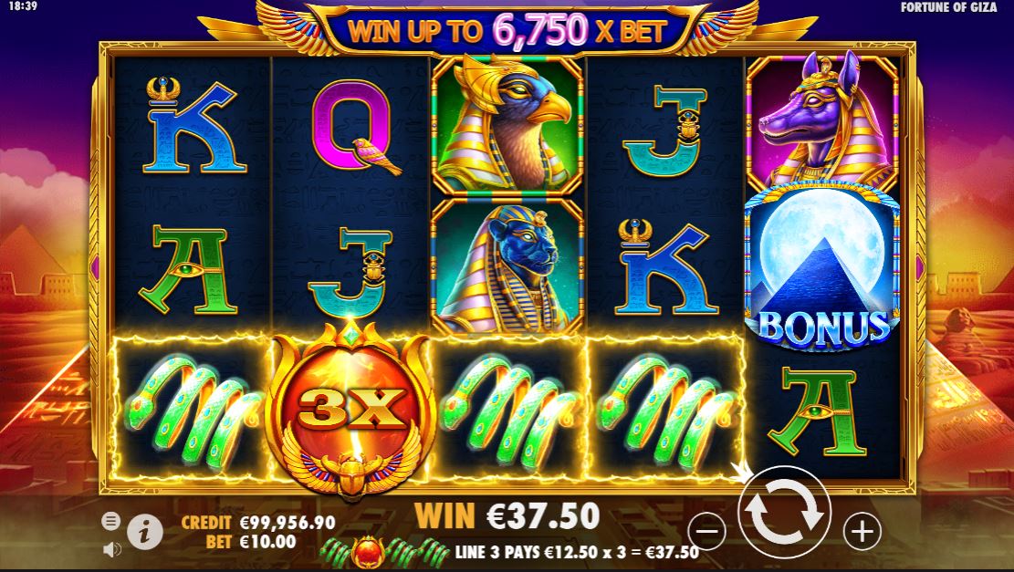 Let’s start with a classic Egypt-themed slot from Pragmatic Play — Fortune of Giza. This slot machine is full of the African sun, sands, and ancient Egyptian gods. All of them together give players the opportunity to multiply their bet by up to 6,750 times. If you are a fan of Egyptian slots, you must try it at the best Pragmatic Play casinos: