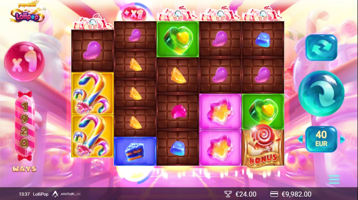 A highly-volatile game, Lollipop, features a 5×3 grid, 33,614 ways to win, and exciting special symbols and games that help you win more. In the base game, every win triggers a growing multiplier. But when you collect bonus symbols and activate a Free Spins round, you can get more — every landed scatter is a reward, upgraded rewards, and high-paying matching scatters. The max possible win is €1,300,000!