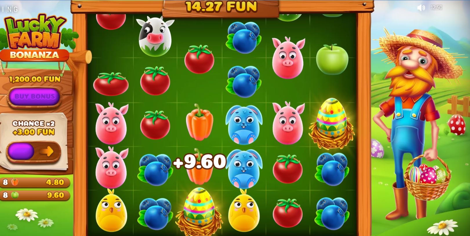 Fruits, veggies, and cute animals are waiting for you in the Lucky Farm Bonanza slot. Besides, you can enjoy free spins, a buy bonus, and a feature that increases your chances to trigger a bonus round.