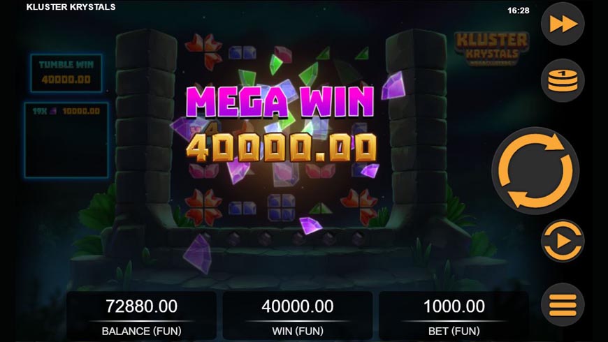 The game is all about special features. First of all, the Megaclusters mechanic literally makes magic on the reels. It is definitely worth trying. Plus, you can trigger Krystal Boost, Krystal Kut, and Krystal Vanish that will increase your chances by upgrading each symbol, removing single symbols and one symbol color.