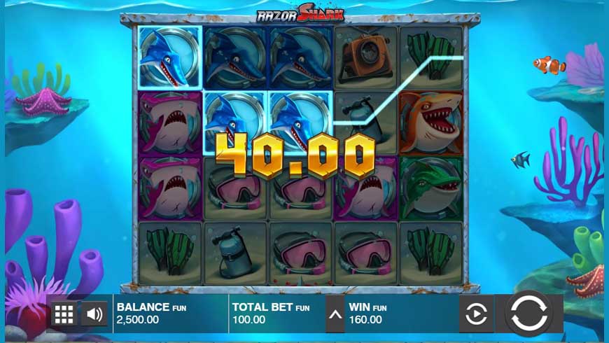 Razor Shark features mystery stacks that can increase your chances of winning. So pay attention to them. Plus, you can activate the bonus free spins with multipliers and unlimited re-spins.