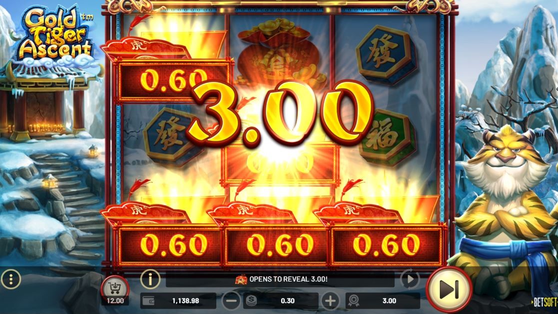 Gold Tiger Ascent has 10 fixed paylines and the maximum win potential is 2520 x your bet. It features Magic Red Envelopes that can randomly reveal Wild symbols, instant cash wins, Scatter symbols, and just high-value symbols.