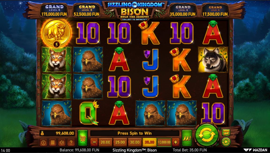 Speaking of jackpots, Sizzling Kingdom: Bison offers four grand jackpot types with a fixed multiplier.