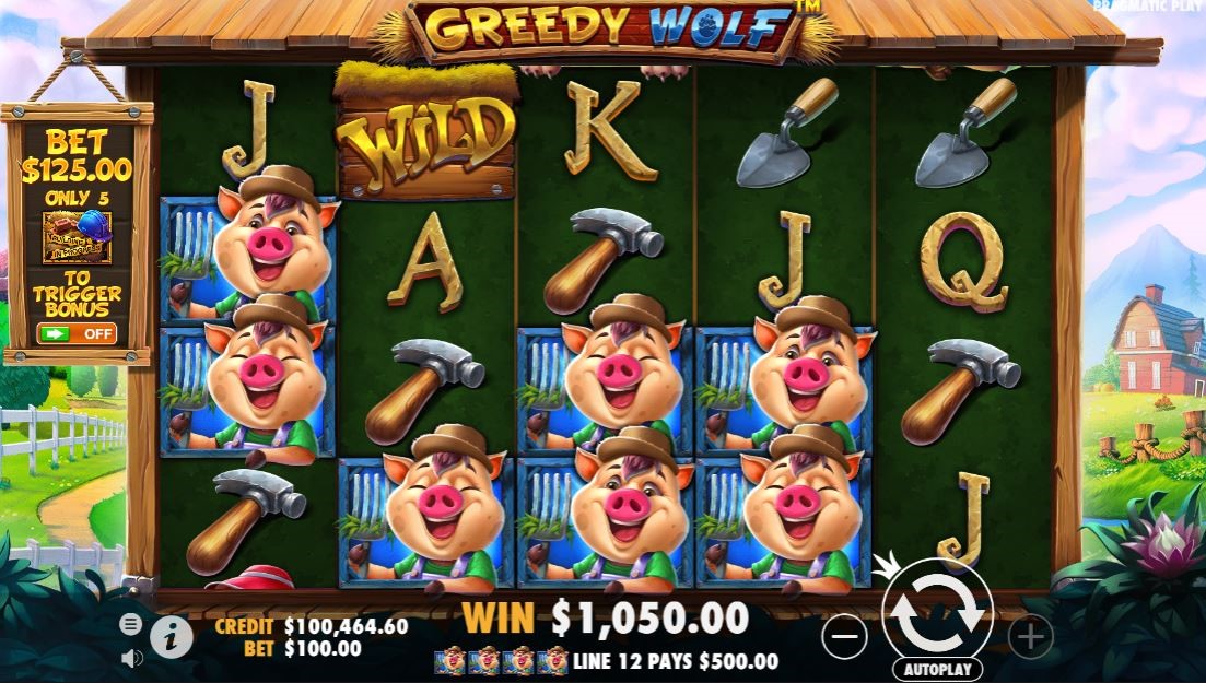Greedy Wolf has four special features. These include Greedy Wolf Wild, 3 Little Pigs and Respins, Guaranteed win, and free spins. During all these bonuses, you will be amazed by the graphics and creative ideas of Pragmatic Play developers.